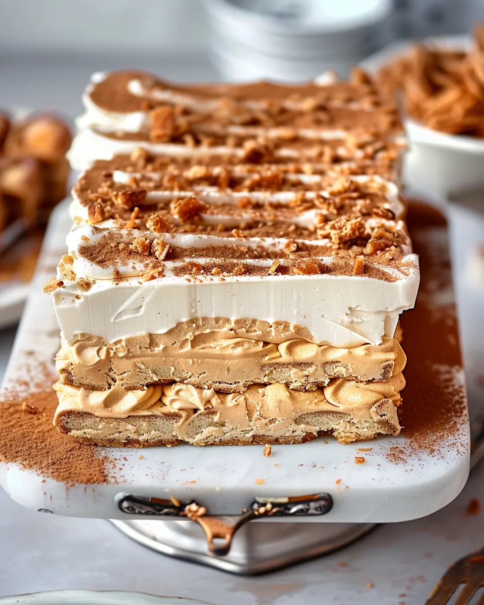No need to worry about complex techniques or endless prep time. The assembly of the Biscoff Icebox Cake is straightforward, and you can even customize the recipe by adding your favorite ingredients—think fresh fruits or even chocolate layers! Plus, with its beautiful layers revealed after slicing, it’s sure to impress at gatherings or as a centerpiece at any celebration.