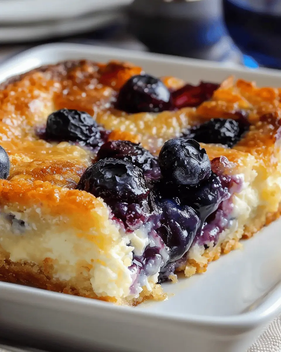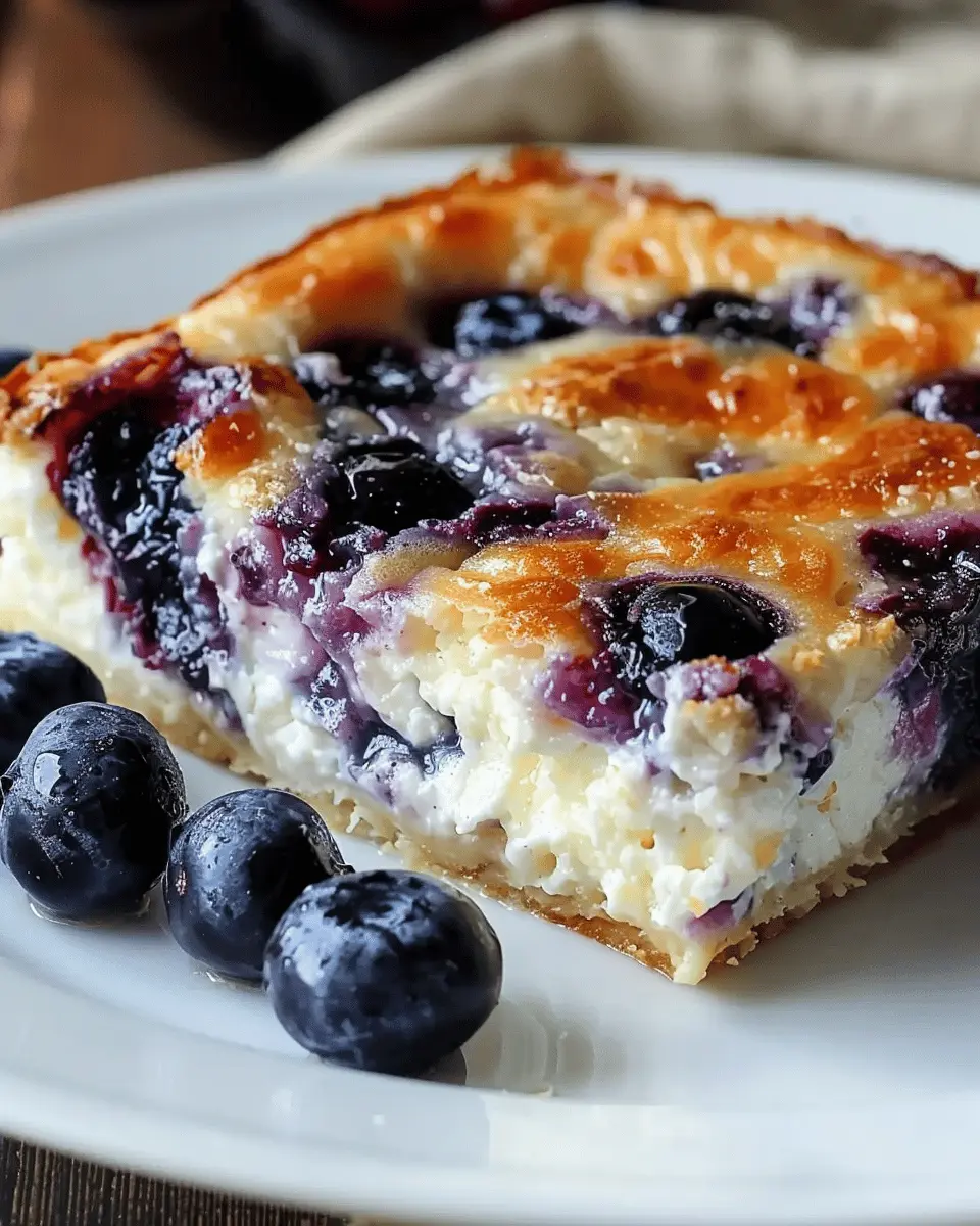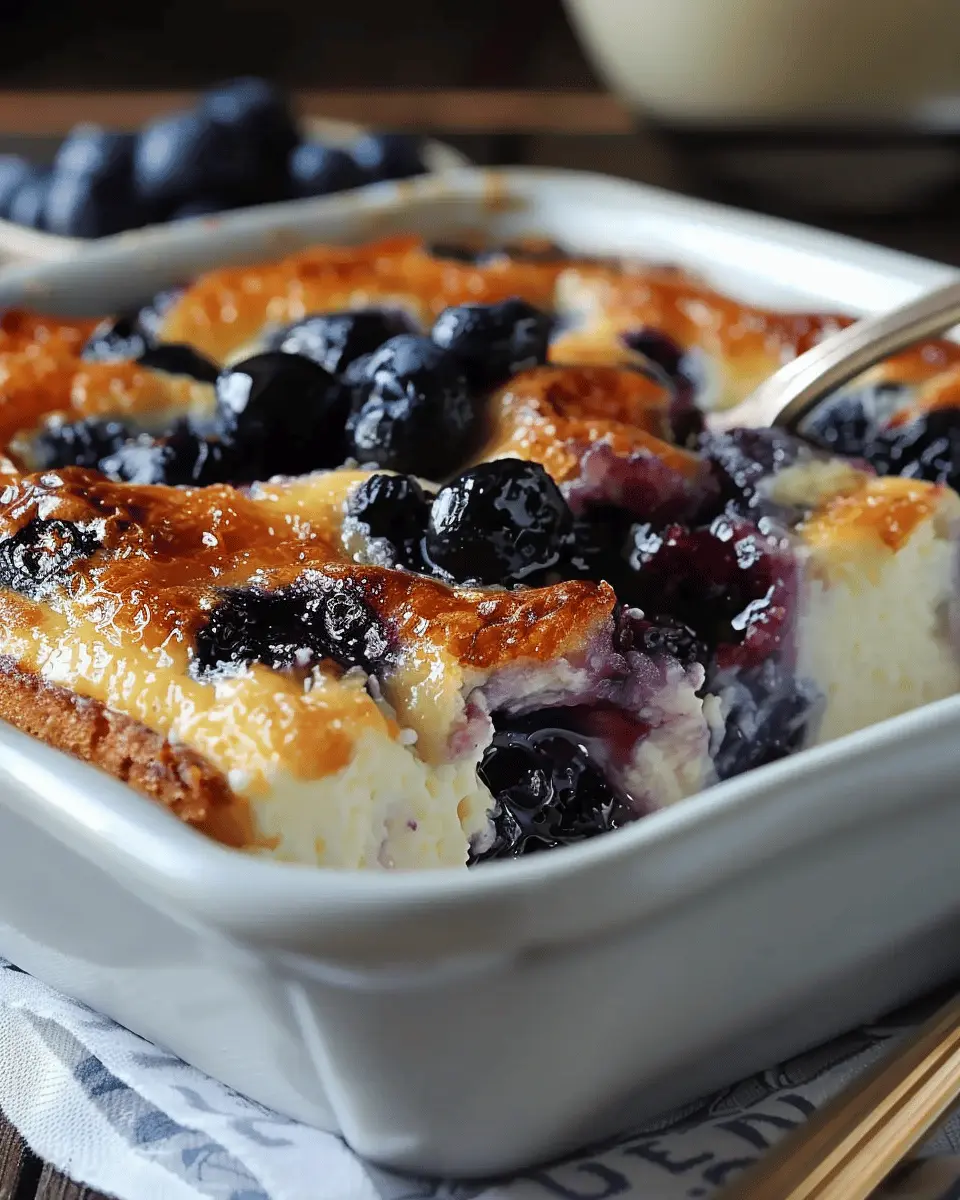 Pour the batter into your prepared baking dish, spreading it evenly. Now, it’s time to place it in the oven! Bake for about 45-50 minutes or until the edges are golden brown and a toothpick inserted in the center comes out clean. The aroma of baking blueberries and warm cottage cheese will fill your kitchen—trust me, it’s worth the wait!