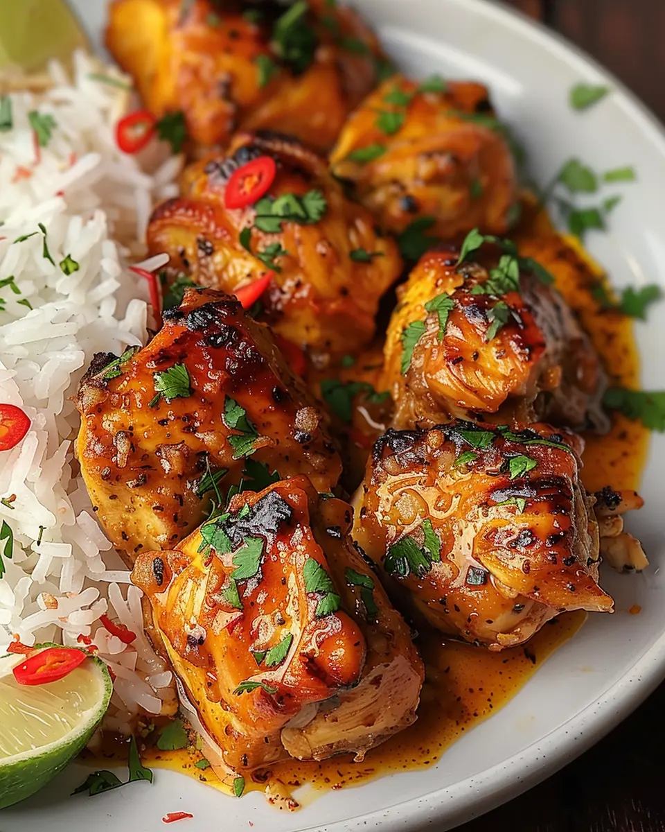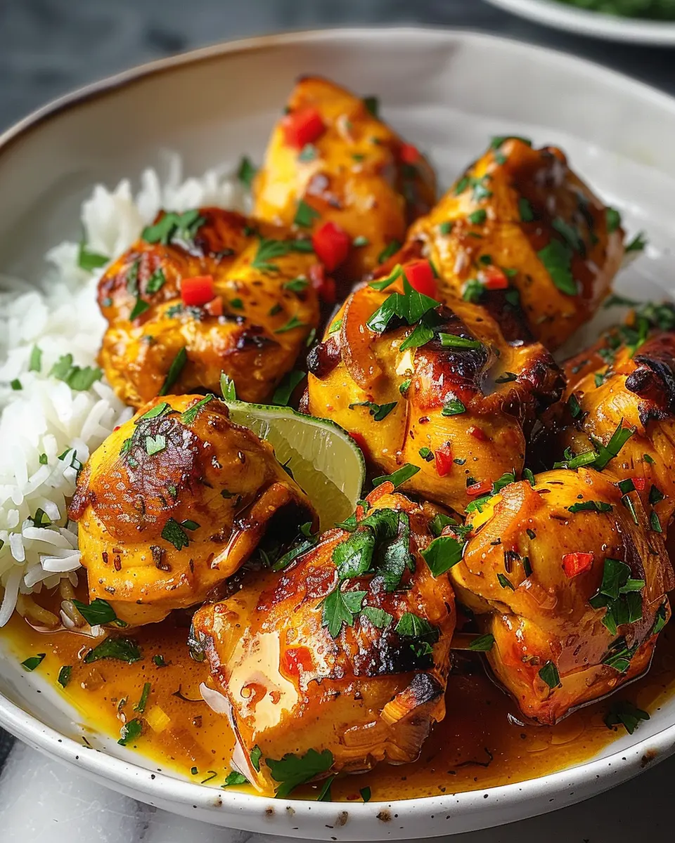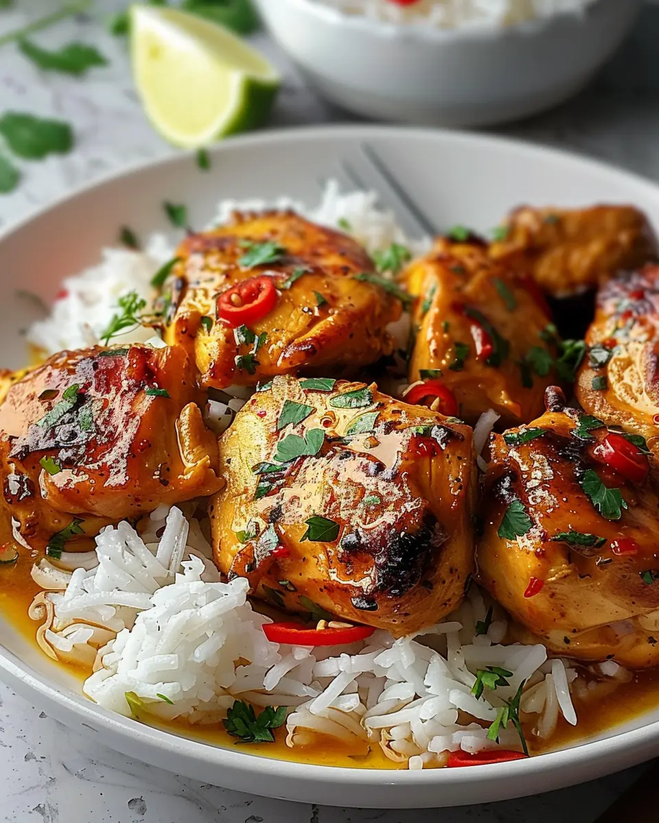 A savory and tropical dish that combines juicy chicken with rich coconut flavors, perfect for a comforting meal.