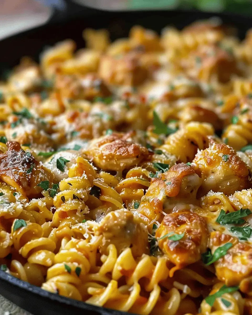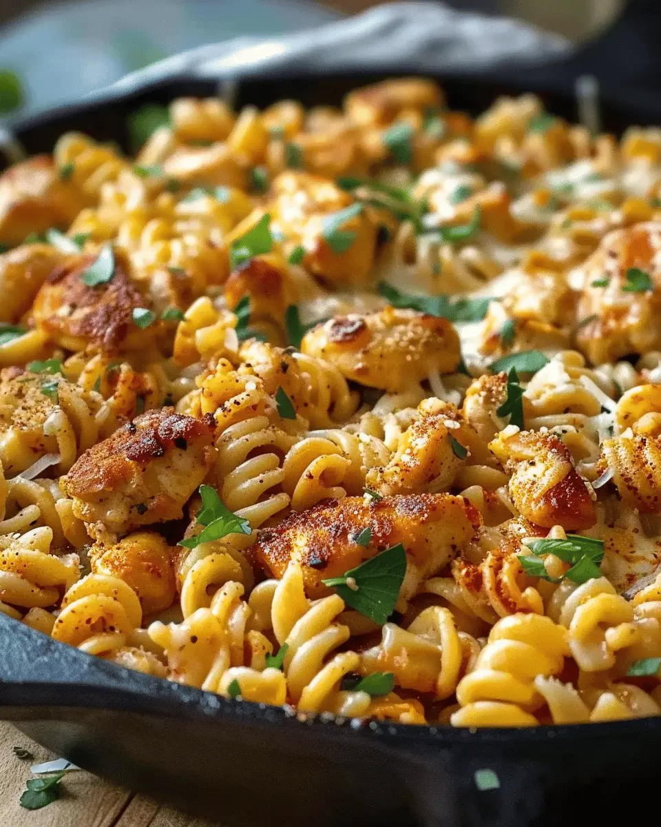 Presentation is key when it comes to impressing friends or family. Instead of serving your cheesy Cajun garlic chicken rotini in a standard bowl, why not get creative? Use individual ramekins or mason jars for a charming, rustic look. Top it with a sprinkle of fresh herbs like parsley or cilantro for a pop of color. You could even serve it in a large cast-iron skillet right on the table for a cozy vibe. This hearty dish is not just about taste; it’s an entire experience!