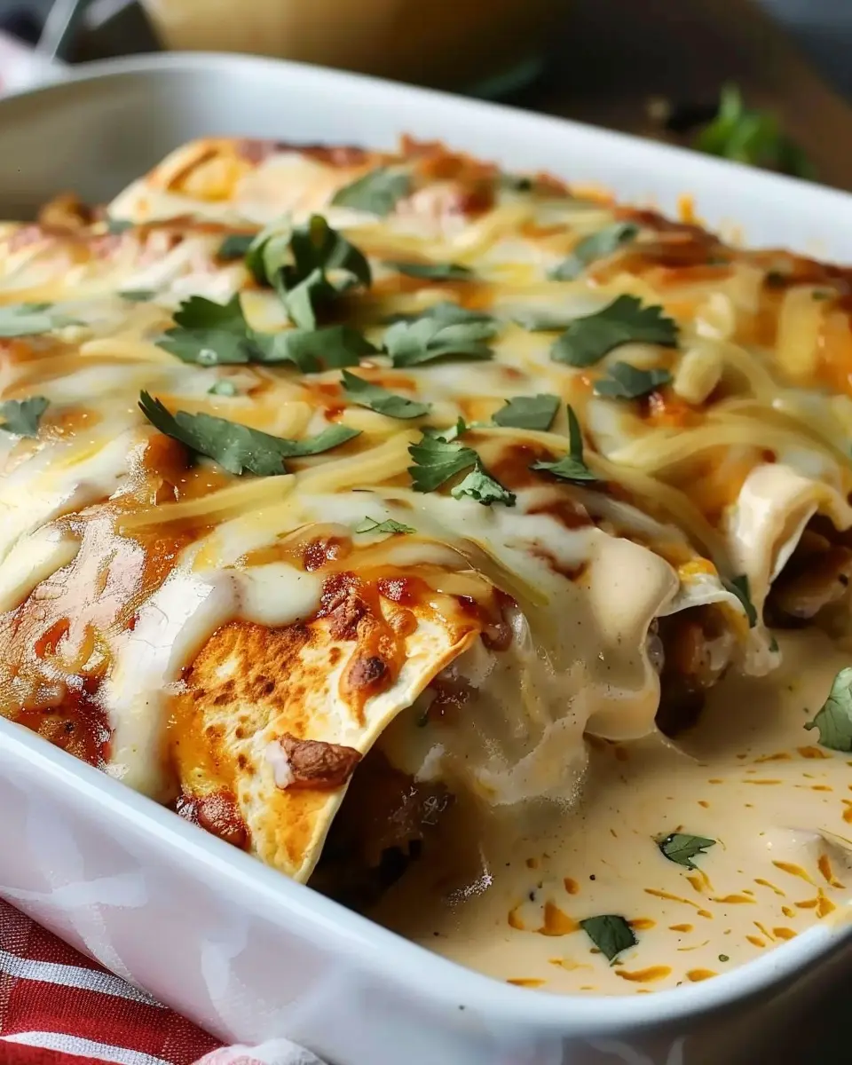 PrintCheesy Chicken Enchiladas with Creamy Sauce: An Easy Delight
