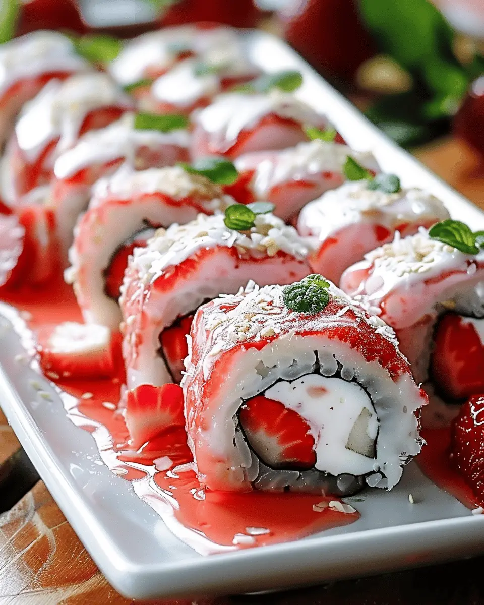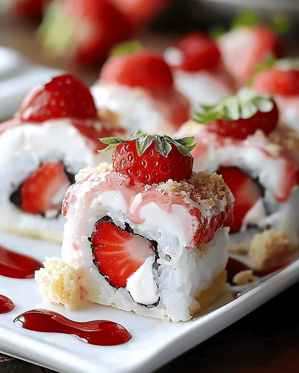Enjoy: Finally, share your beautiful creative strawberry shortcake sushi rolls with friends, or savor them yourself!