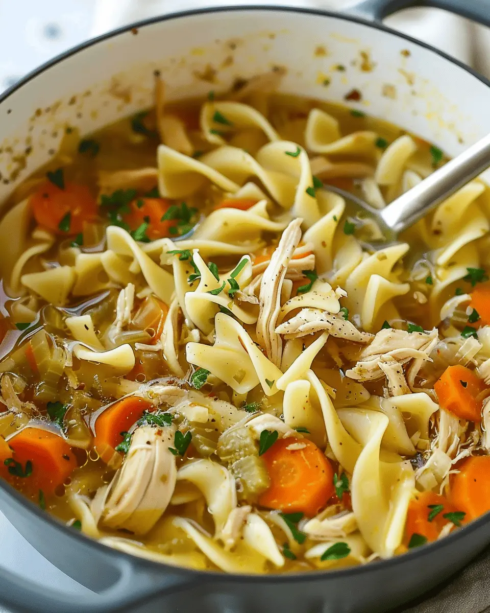 And there you have it! A warm, satisfying bowl of chicken noodle soup that’s not only easy to make but also packed with flavor. This recipe offers endless variations, so feel free to experiment with your favorite ingredients. Pair it with a slice of crusty bread for a comforting meal!