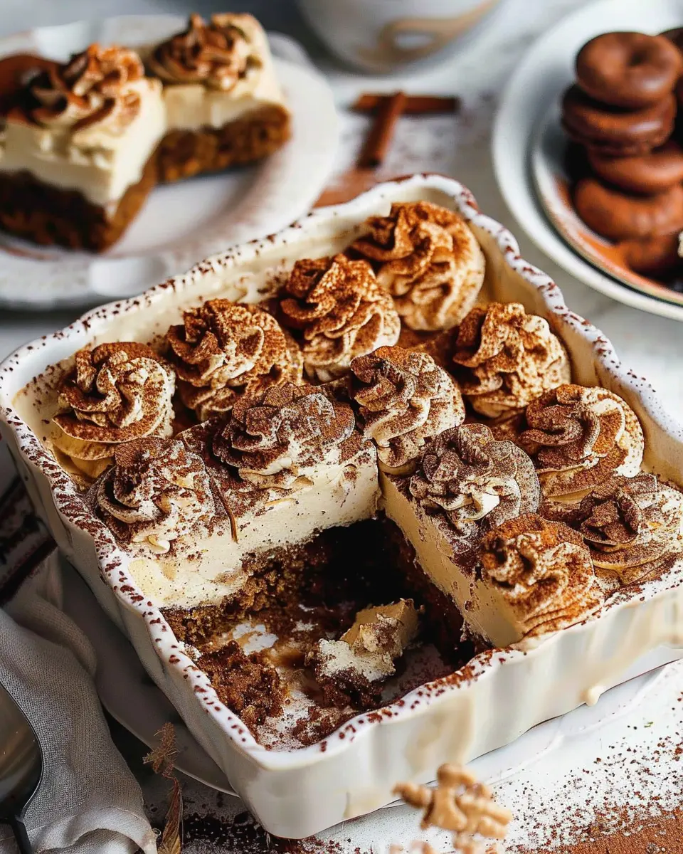 Presentation is key when serving your easy gingerbread tiramisu. Consider layering the dessert in individual glass cups for a charming look. Top each serving with a sprinkle of cocoa powder and a dollop of whipped cream, garnished with a cinnamon stick for that extra festive flair. For a more dramatic impact, arrange slices on a wooden serving board, adorned with fresh cranberries and sprigs of rosemary. Not only does this create a lovely holiday centerpiece, but it also invites everyone to dig in and enjoy!