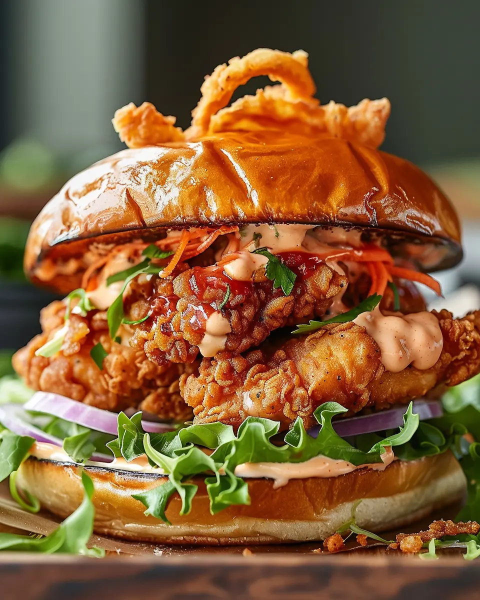 Looking to crank up the heat? A spicy Thai fried chicken sandwich is just what your taste buds ordered! The key here is to marinate your chicken in a spicy blend of sriracha, garlic, and ginger before coating it in a flavorful batter. This adds an extra punch that complements the crunch of your fried chicken.