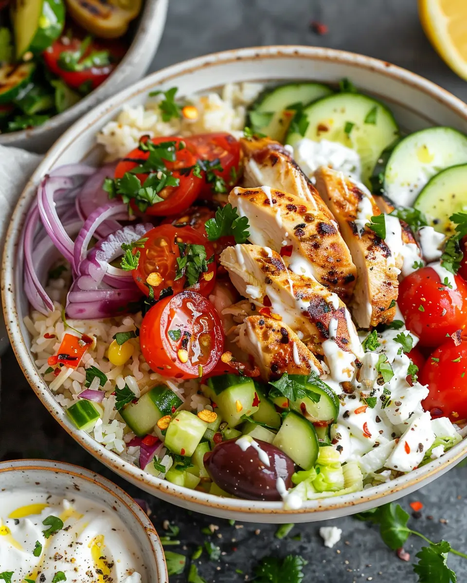 PrintGreek Chicken Bowls: Easy, Flavorful Meals Everyone Will Love