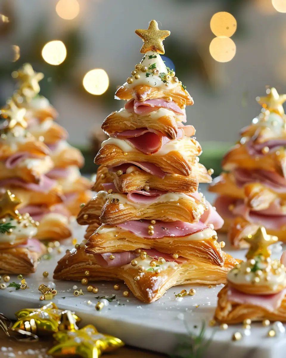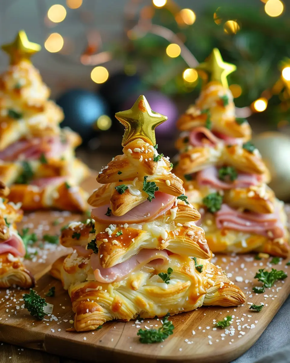 Delightful ham and cheese puff pastry trees that bring festive cheer to your holiday celebrations.