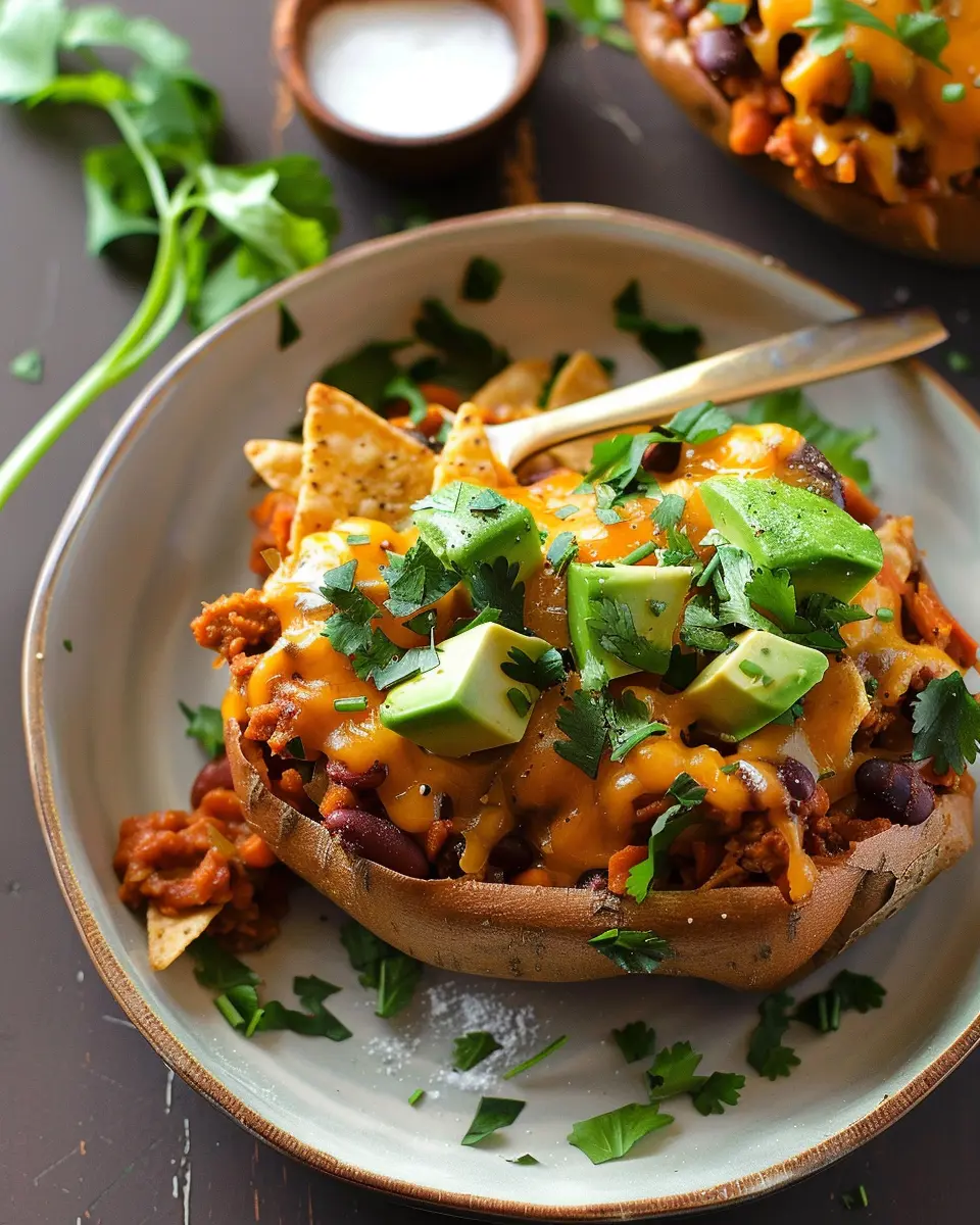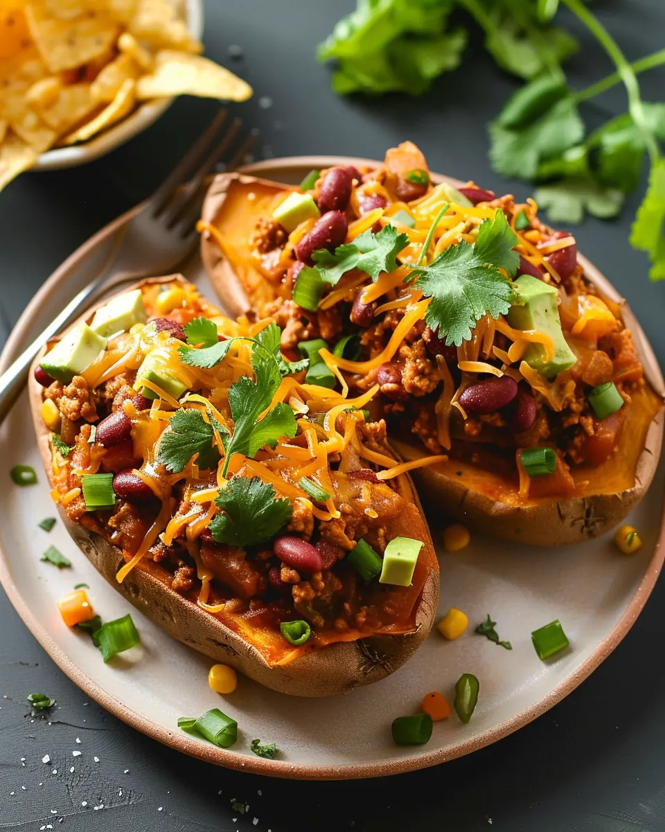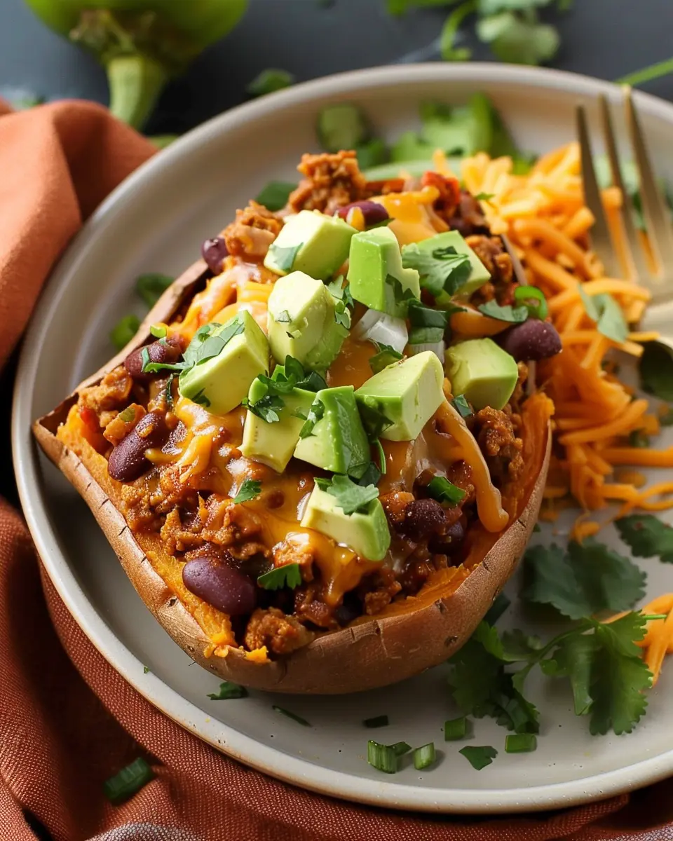 Heart-Healthy Avocado Turkey Chili Stuffed Sweet Potatoes Delight