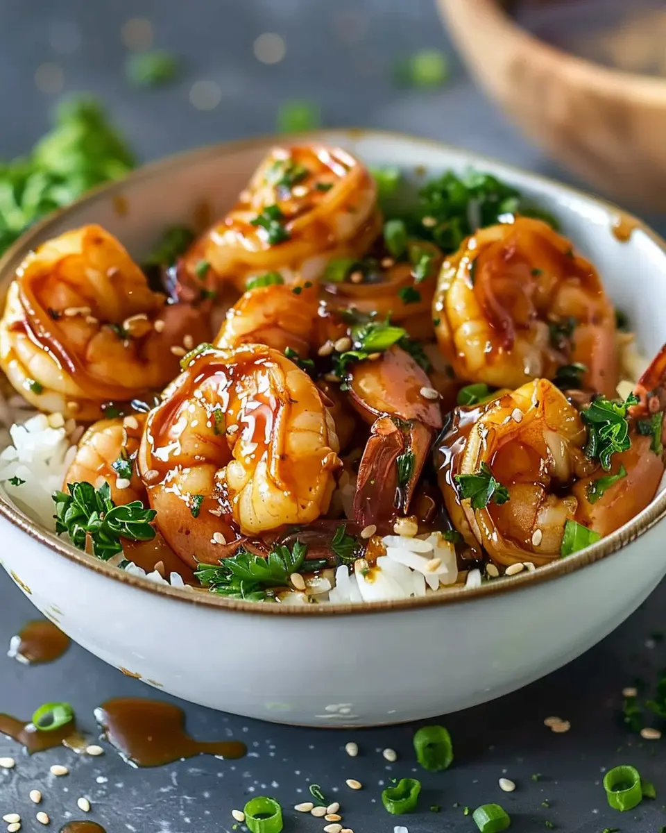 Teriyaki-Style Honey Garlic Shrimp Bowls