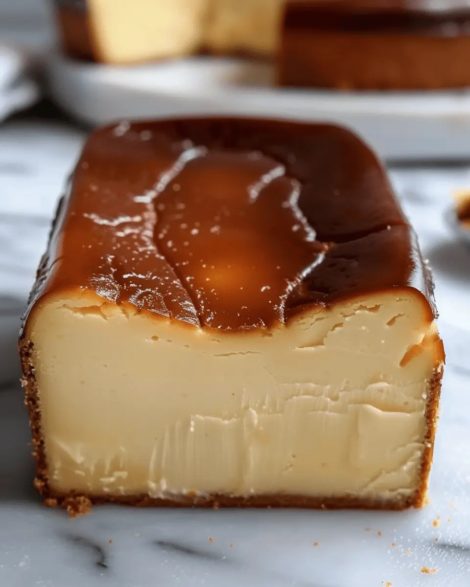 Experience the decadence of a Basque cheesecake in a loaf pan, perfect for any occasion.