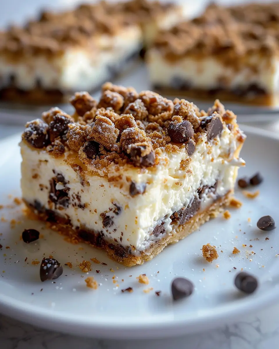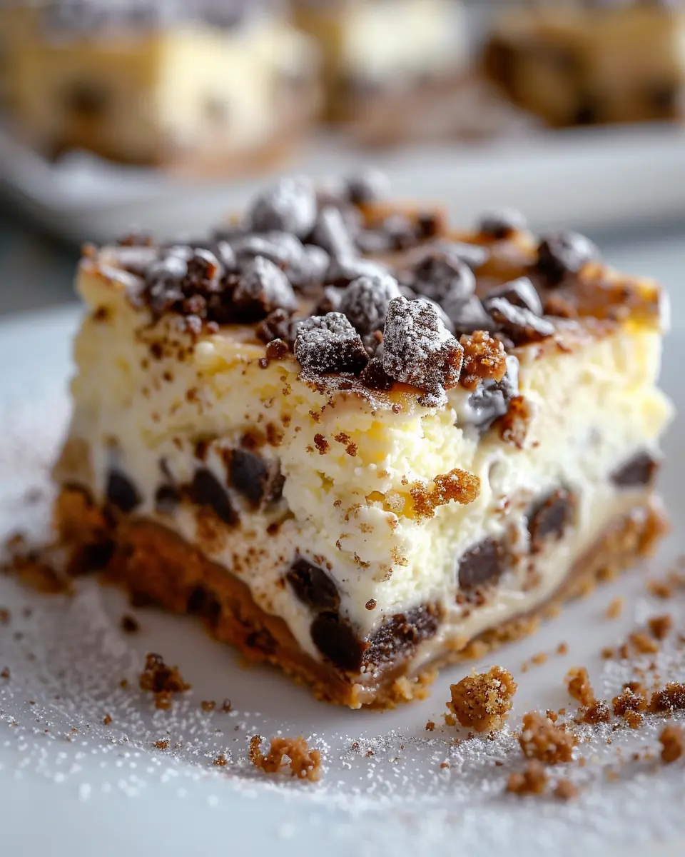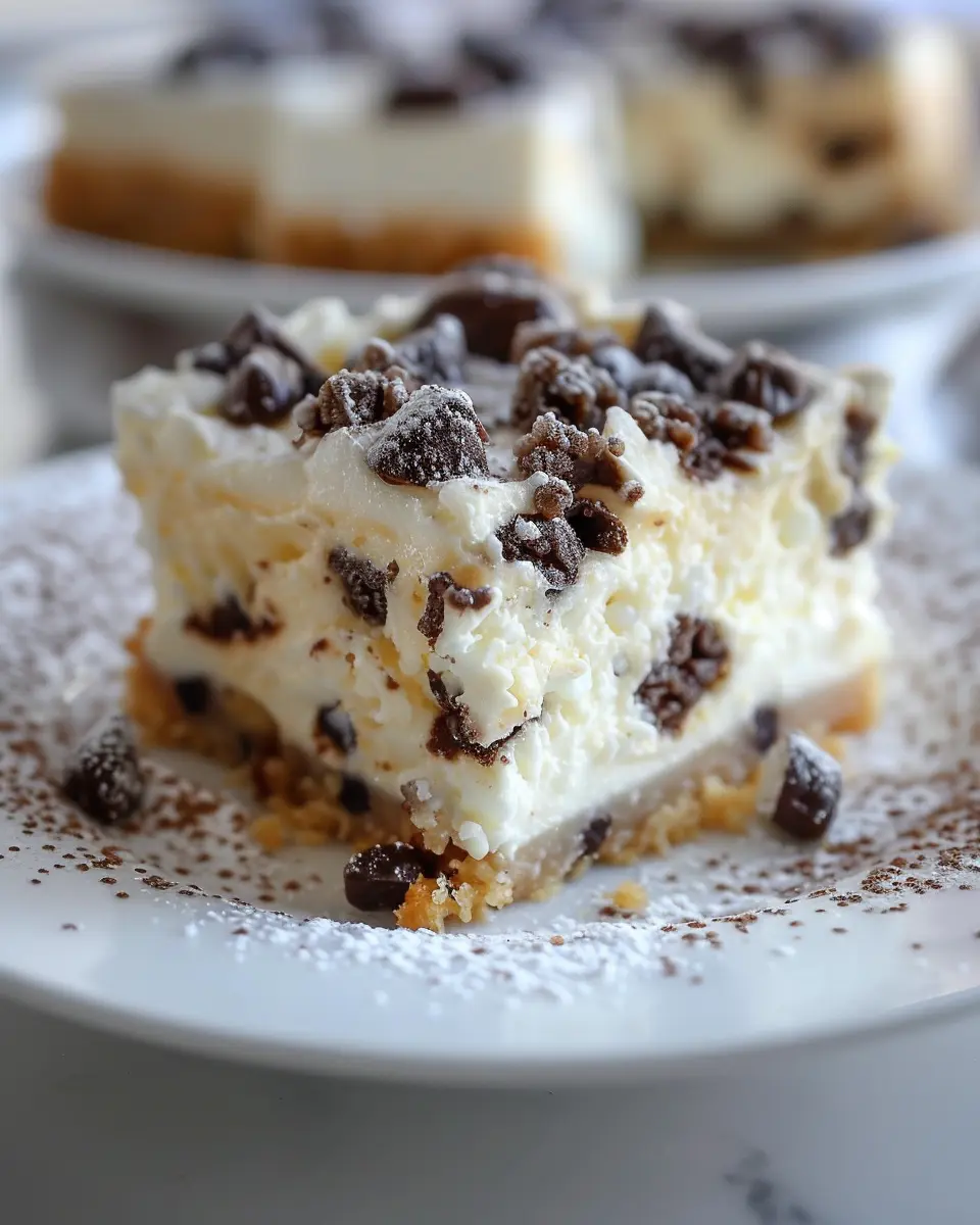 This version offers the rich flavors of cannoli while adding a layer of sweetness from the chocolate. Perfect for gatherings or cozy nights in, chocolate chip-infused cheesecake bars will surely be a hit!
