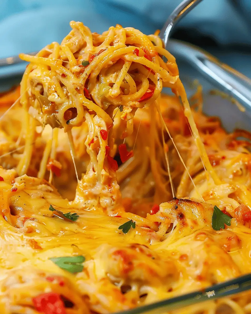 PrintIrresistible Spicy Southern Cheesy Chicken Spaghetti Casserole Delight