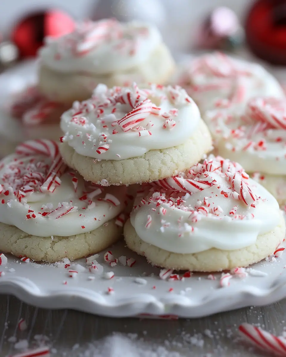While the cookies are cooling, you can prepare a simple glaze with additional crushed peppermint and powdered sugar to sprinkle on top for extra festive flair.