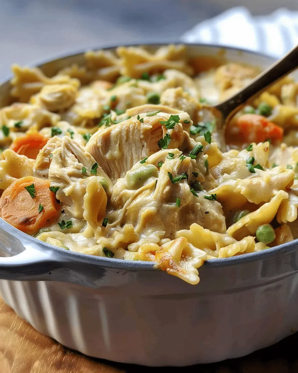 In summary, Quick Chicken Pot Pie Pasta combines the rich, nostalgic flavors of classic chicken pot pie into a quick, satisfying meal. This dish is perfect for busy weeknights, offering the warmth and comfort you crave without the lengthy prep time.