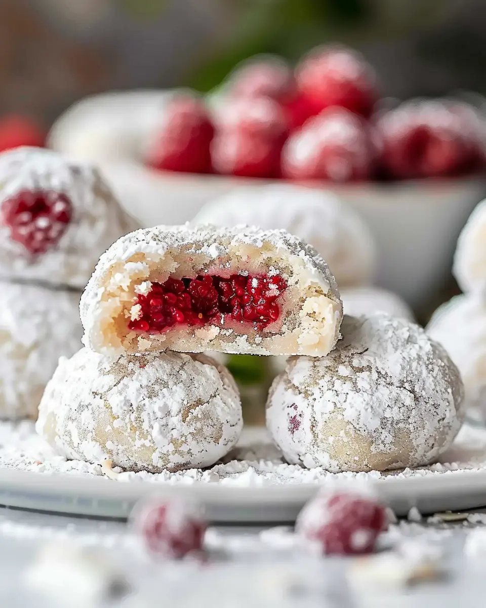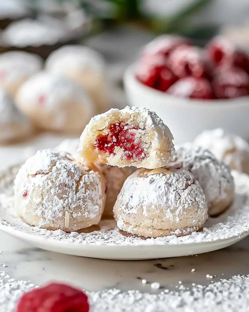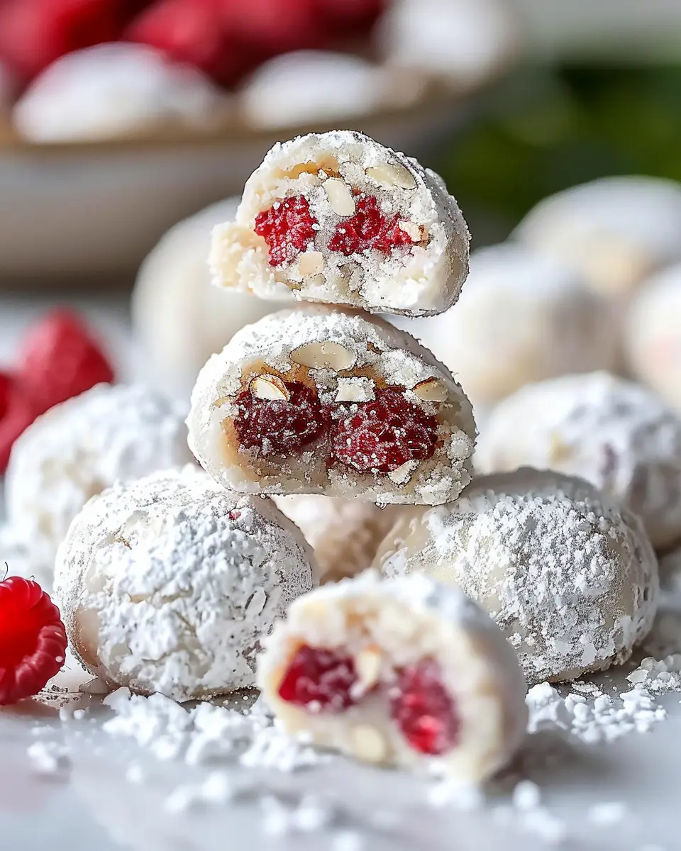 Indulge in the delightful flavors of Raspberry Almond Snowball Cookies with this easy recipe.