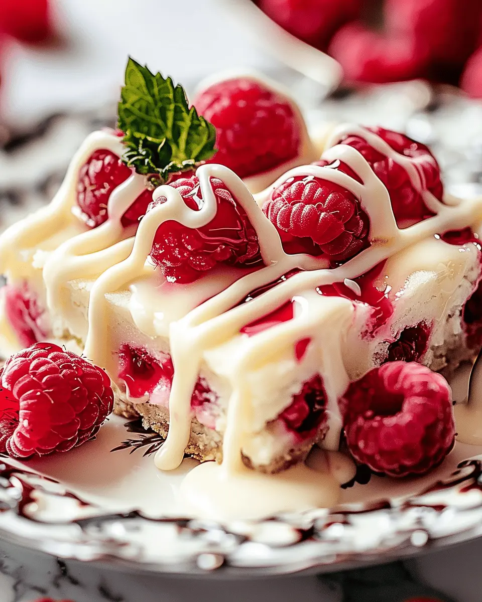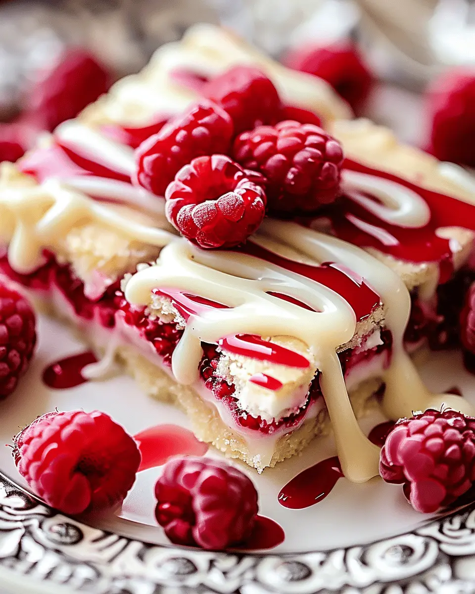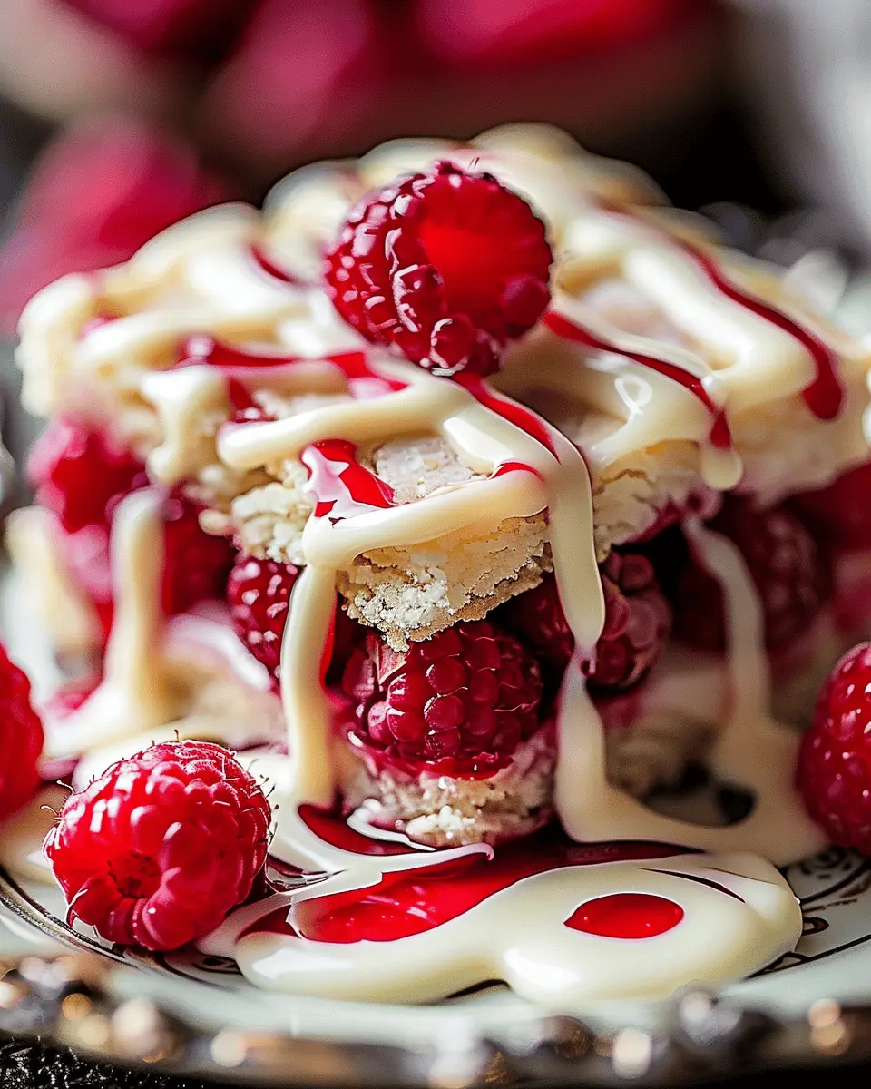 Raspberry Shortbread with White Chocolate Drizzle is a sweet and elegant dessert that combines rich flavors with a delicate texture.