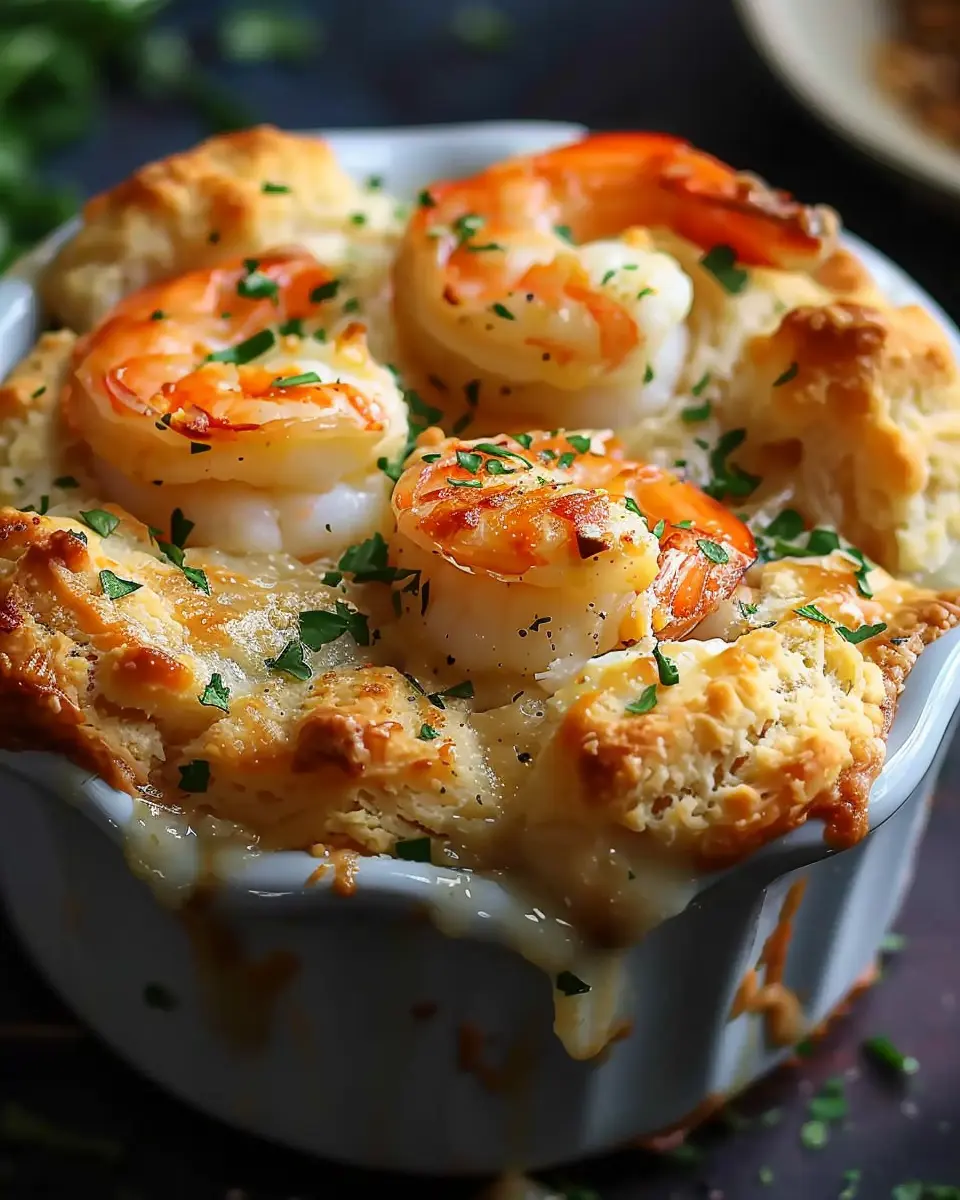 PrintShrimp Lobster Pot Pie: Indulgent Cheddar Bay Biscuit Delight