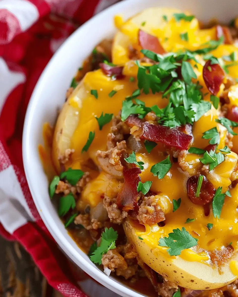 Slow Cooker Cowboy Potato Casserole is a hearty and indulgent meal perfect for weeknight dinners, combining creamy potatoes, savory beef, and melty cheese.