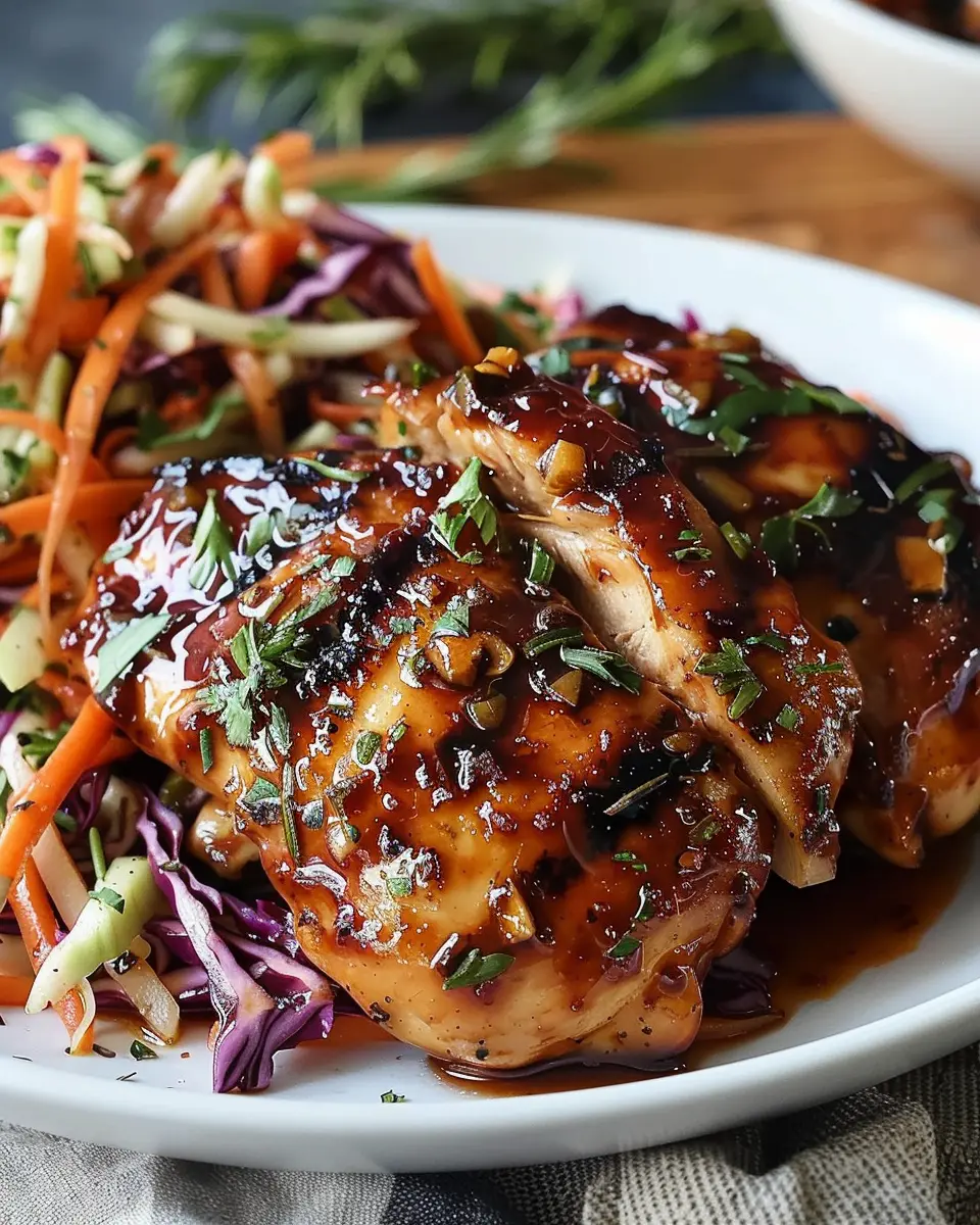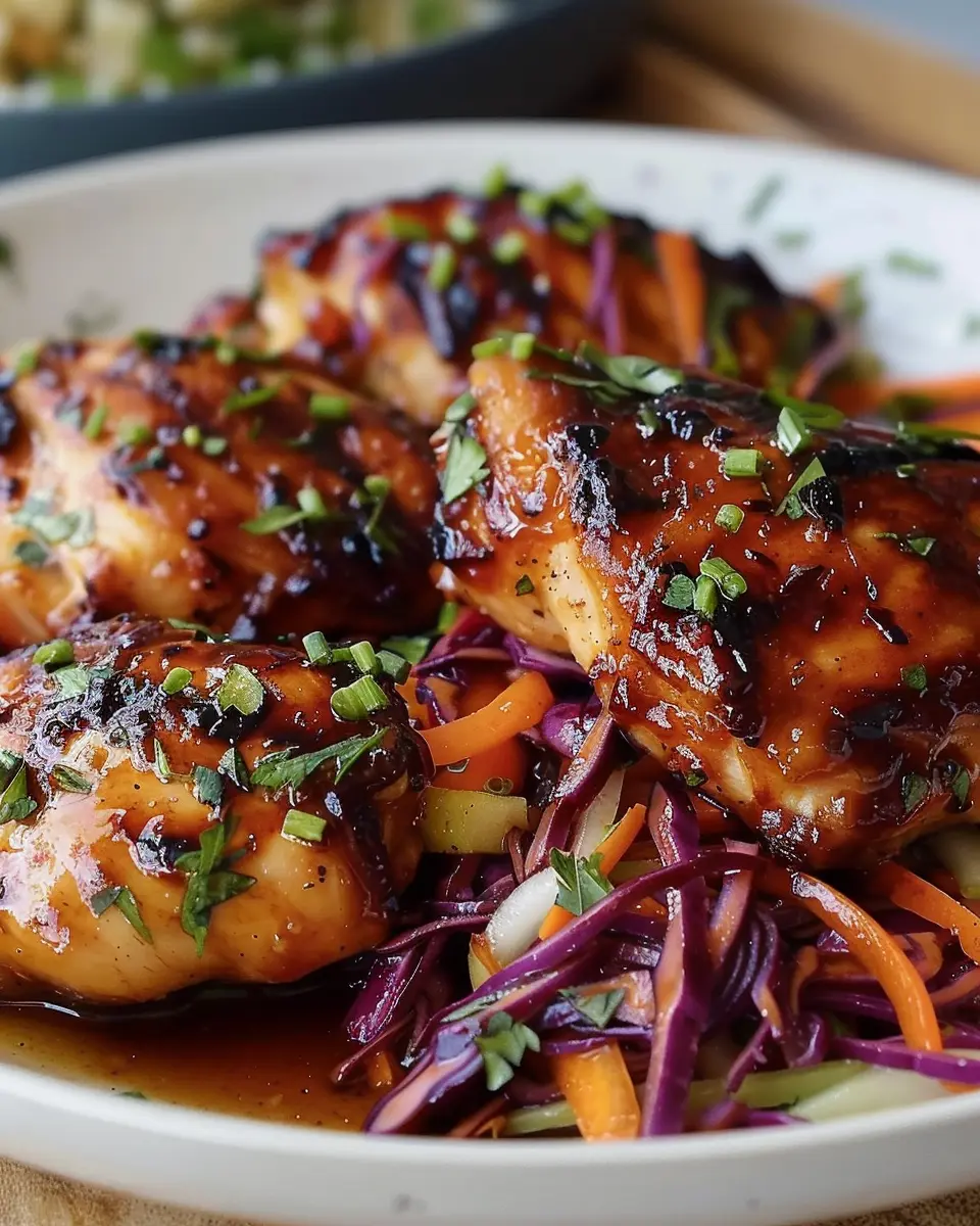 Discover the mouthwatering flavors of sticky apple cider chicken complemented by a crisp autumn slaw. Perfect for cozy dinners!
