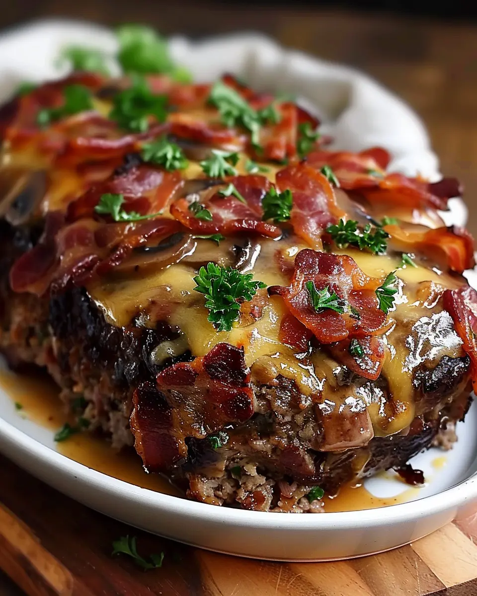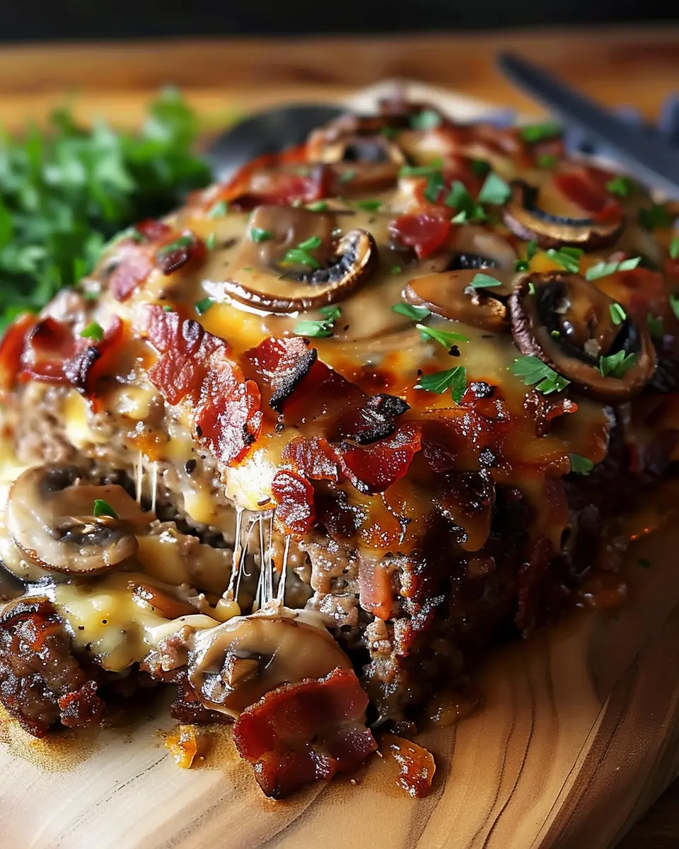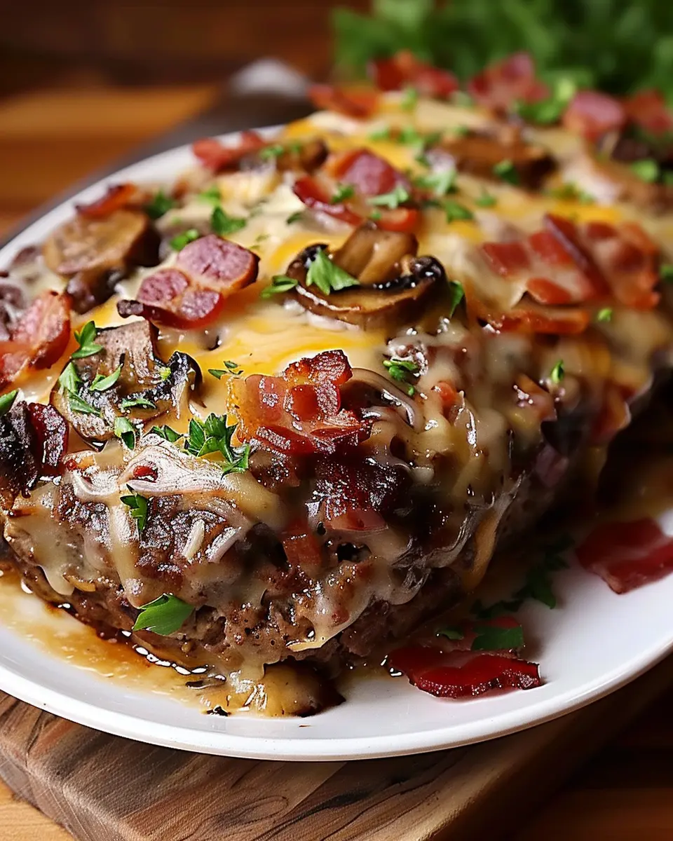PrintSwiss Bacon Mushroom Meatloaf – Cheesy & Hearty Comfort Food