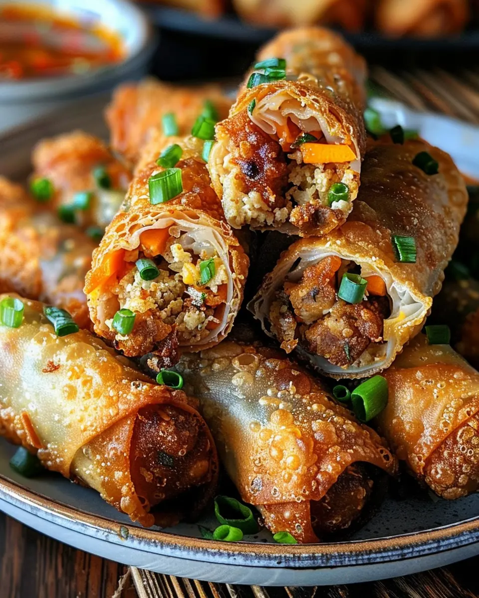 For those who enjoy a meaty crunch, try stuffing your egg rolls with a hearty mix of chicken ham and turkey bacon. Just think of the smoky, savory flavor that can elevate your dish! To prepare this variation, sauté diced chicken ham and crispy turkey bacon with onions and jalapeños. Then, fold the mixture into your egg roll wrappers, fry them up until golden brown, and serve with a tangy dipping sauce for an unforgettable treat.